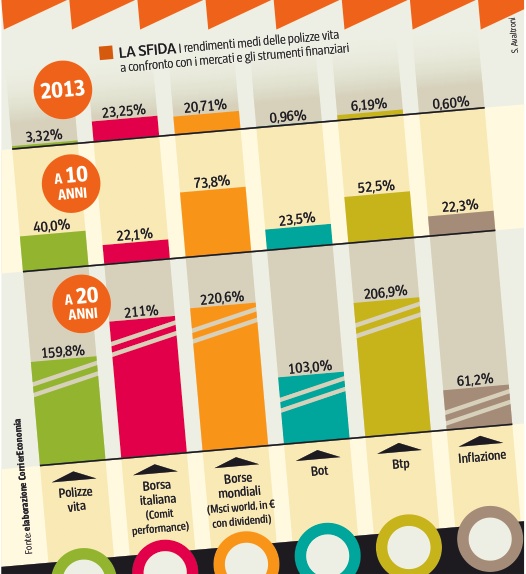 Il taglio della detrazione comporta una perdita dello 0,20% all’anno in termini di rendimento finanziario. Ipotizziamo una po- lizza vita di durata 20 anni, stipulata nel 2000 con versamento di 1.291,14 euro (2.500.000 lire, che erano la soglia massima per la detrazione), un costo sul versamento del 7% (comprensivo del- l’imposta del 2,5% in vigore all’epoca) e un tasso di rivalutazione del 4% annuo («tasso minimo garantito»). Con queste ipotesi dopo 20 anni nel 2020 il capitale maturato sarebbe ammontato a 37.168 euro, a fronte di un totale di versamenti netti di 25.882 euro e con un rendimento finanziario annuo composto del 5,20% (il 3,35% escludendo il fattore tasse). Con il taglio della detrazio- ne per gli ultimi 6 anni di durata si perdono 848,70 euro di minori tasse. E così il rendimento finanziario annuo composto scende al 4,97%.