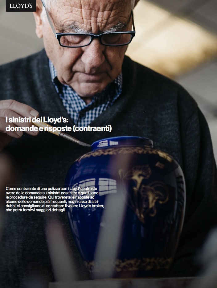 Broker – È il professionista che vi ha seguito nella sottoscrizione della vostra copertura assicurativa. Vi rappresenta e vi consiglia per l’intero processo della pratica e collaborerà con gli assicuratori dei Lloyd’s per sostenervi e risolvere il sinistro il più rapidamente possibile.